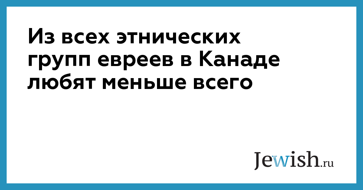 Из всех этнических групп евреев в Канаде любят меньше всего