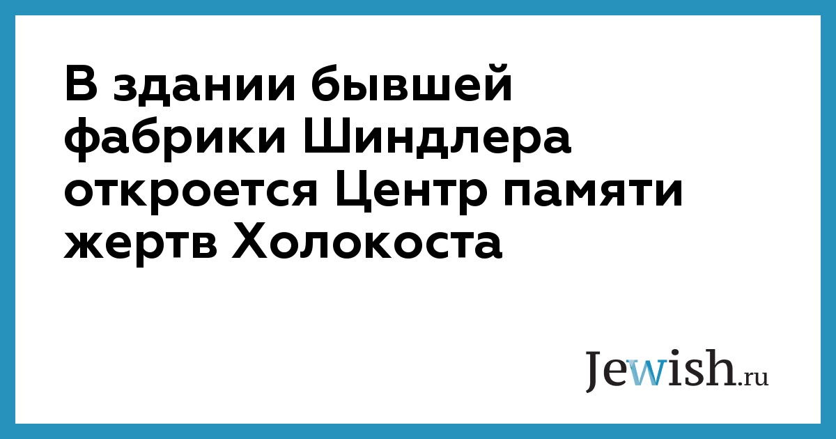 В здании бывшей фабрики Шиндлера откроется Центр памяти жертв Холокоста