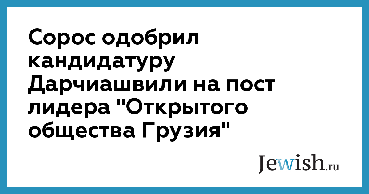 Сорос одобрил кандидатуру Дарчиашвили на пост лидера "Открытого общества Грузия"