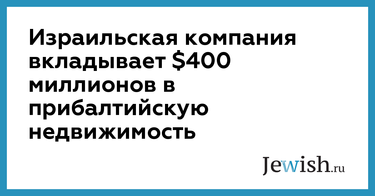 Израильская компания вкладывает $400 миллионов в прибалтийскую недвижимость