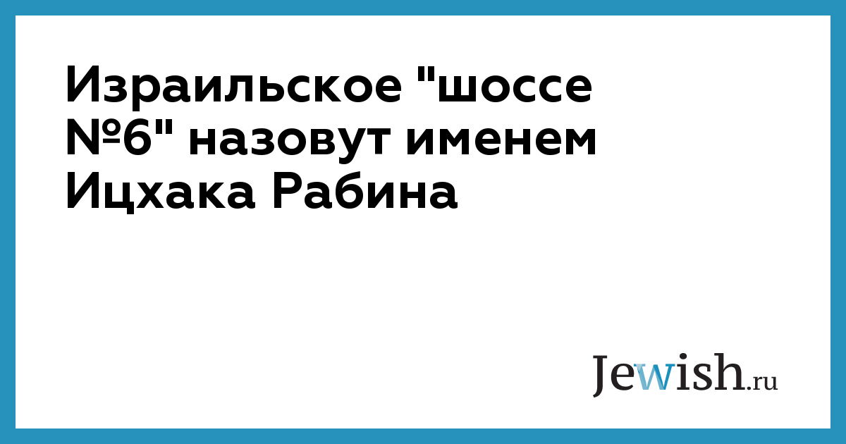 Израильское "шоссе №6" назовут именем Ицхака Рабина