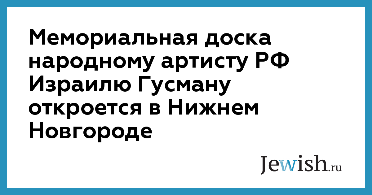 Мемориальная доска народному артисту РФ Израилю Гусману откроется в Нижнем Новгороде