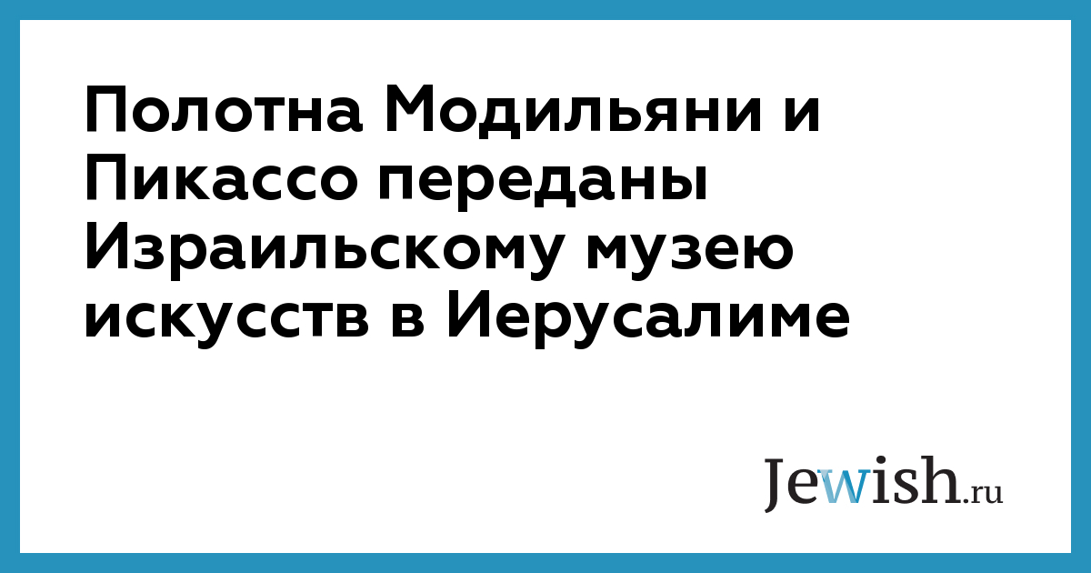 Полотна Модильяни и Пикассо переданы Израильскому музею искусств в Иерусалиме