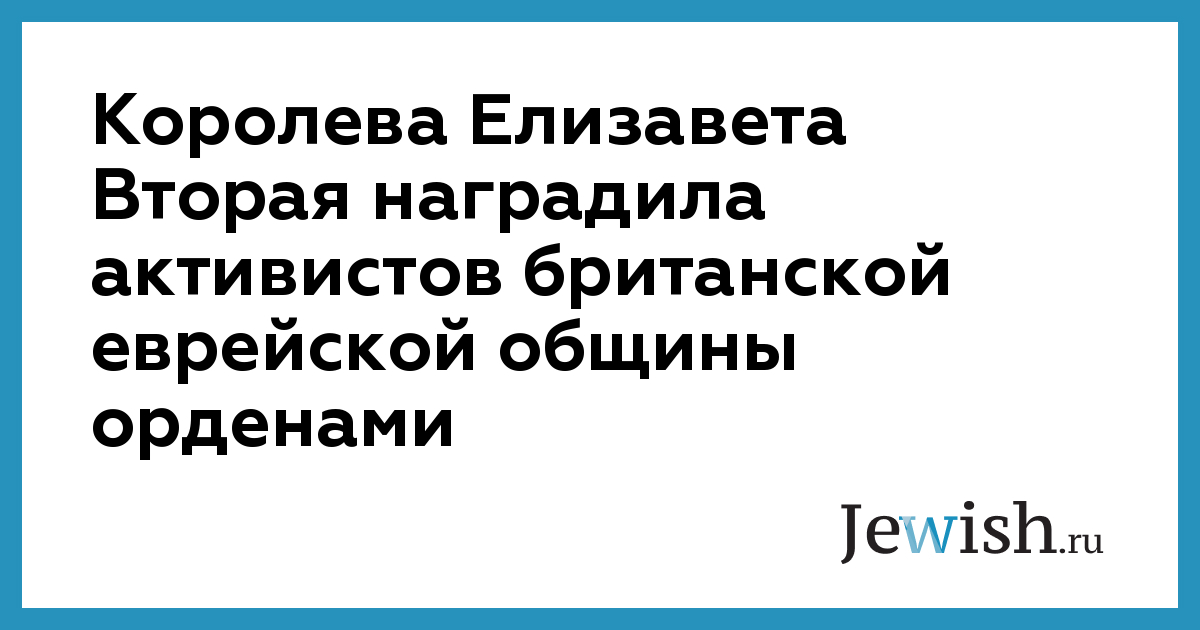 Королева Елизавета Вторая наградила активистов британской еврейской общины орденами