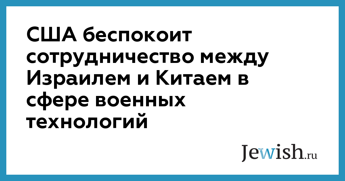 США беспокоит сотрудничество между Израилем и Китаем в сфере военных технологий
