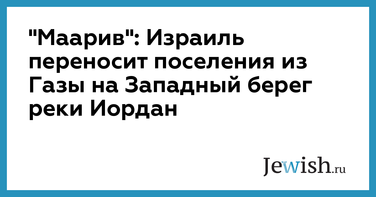 "Маарив": Израиль переносит поселения из Газы на Западный берег реки Иордан