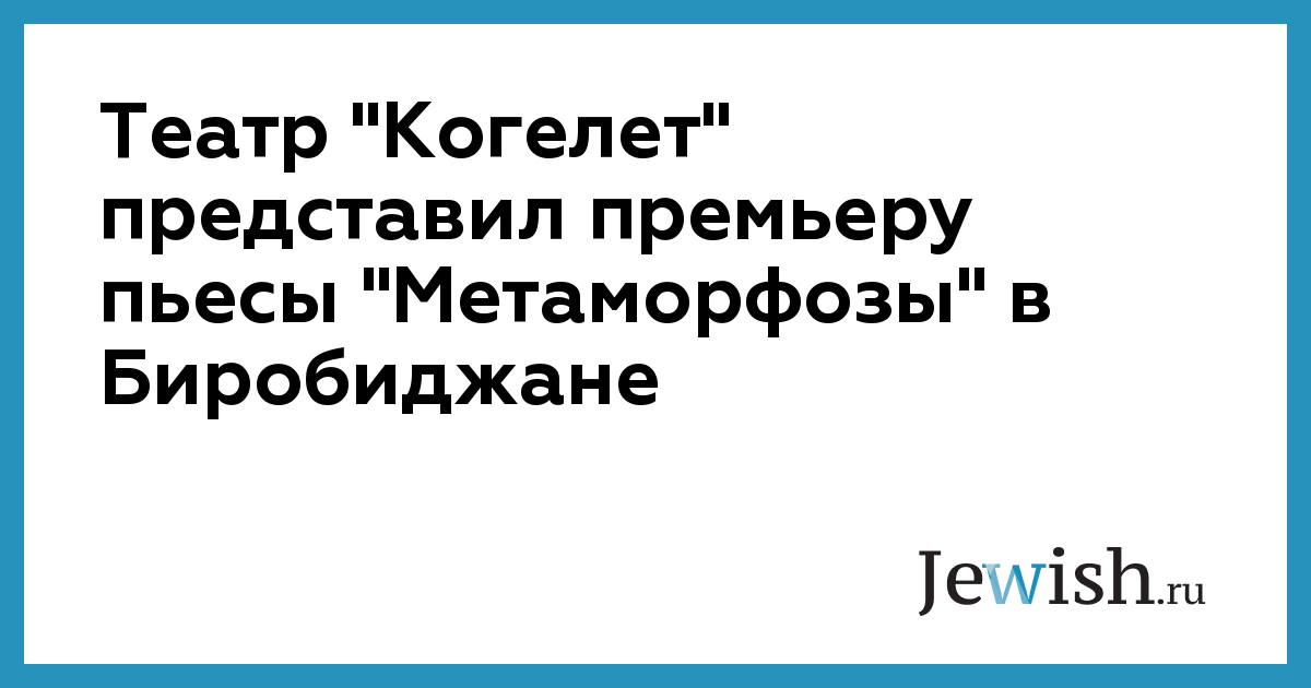Театр "Когелет" представил премьеру пьесы "Метаморфозы" в Биробиджане