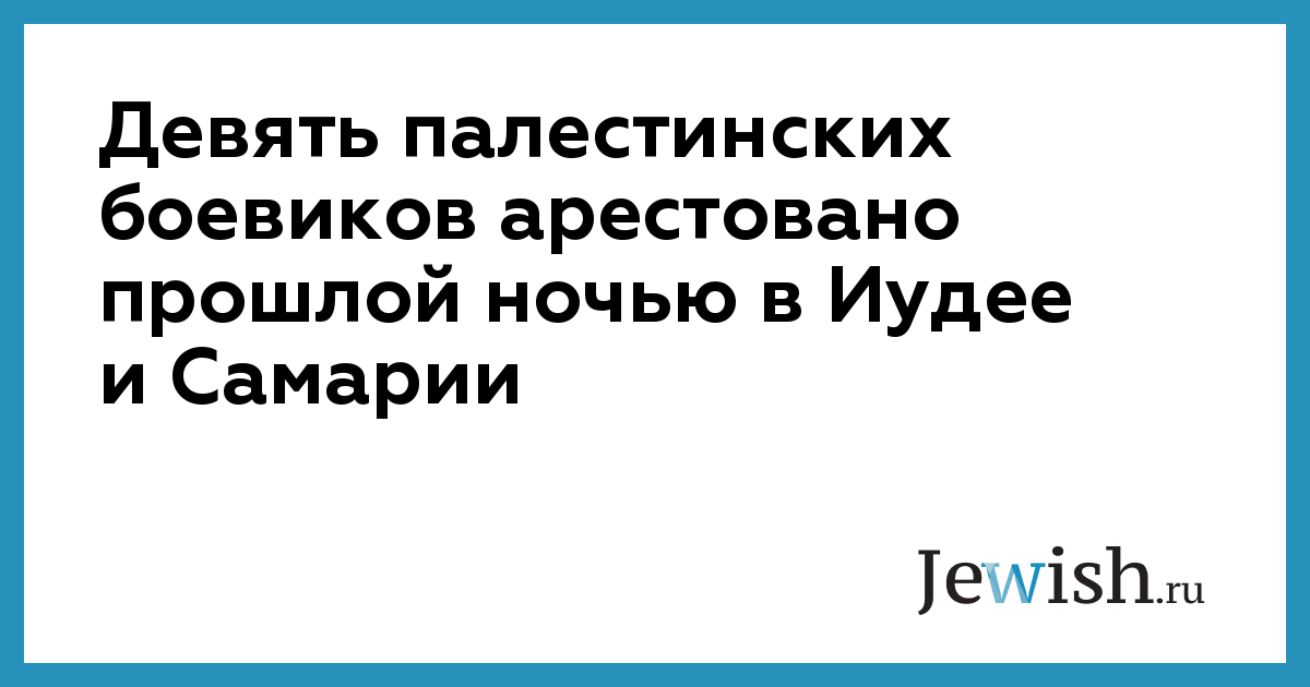 Девять палестинских боевиков арестовано прошлой ночью в Иудее и Самарии