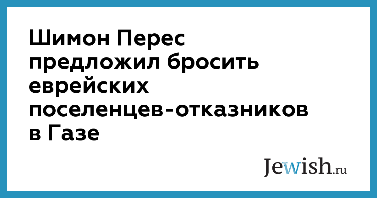 Шимон Перес предложил бросить еврейских поселенцев-отказников в Газе