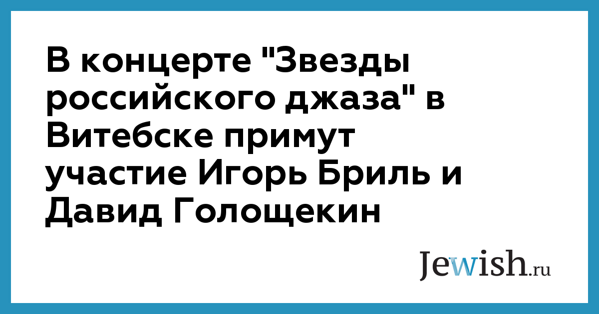 В концерте "Звезды российского джаза" в Витебске примут участие Игорь Бриль и Давид Голощекин
