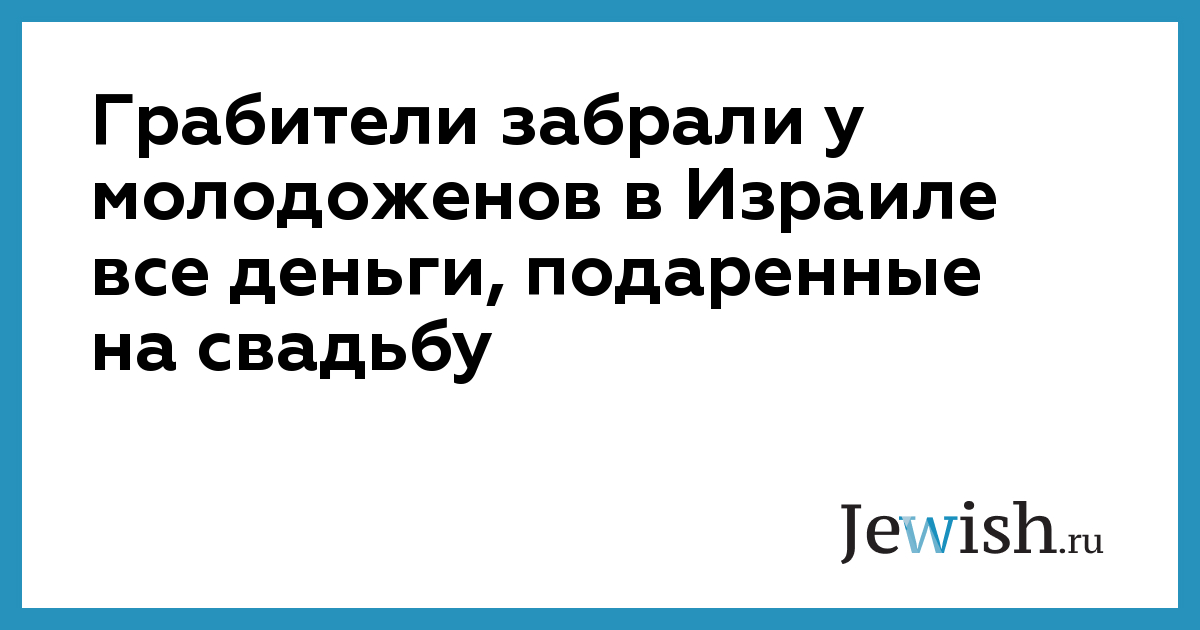Грабители забрали у молодоженов в Израиле все деньги, подаренные на свадьбу