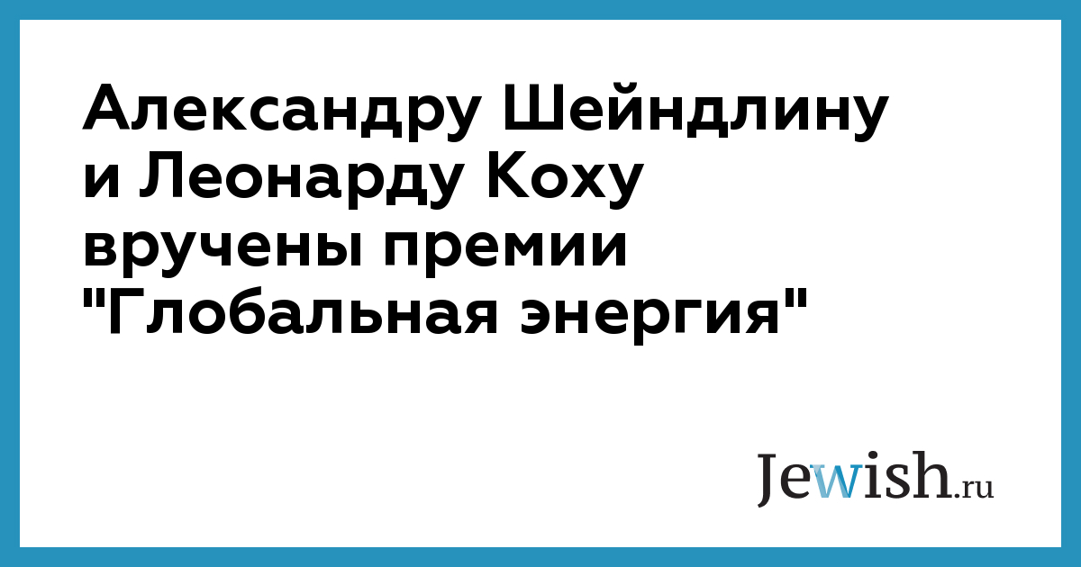 Александру Шейндлину и Леонарду Коху вручены премии "Глобальная энергия"