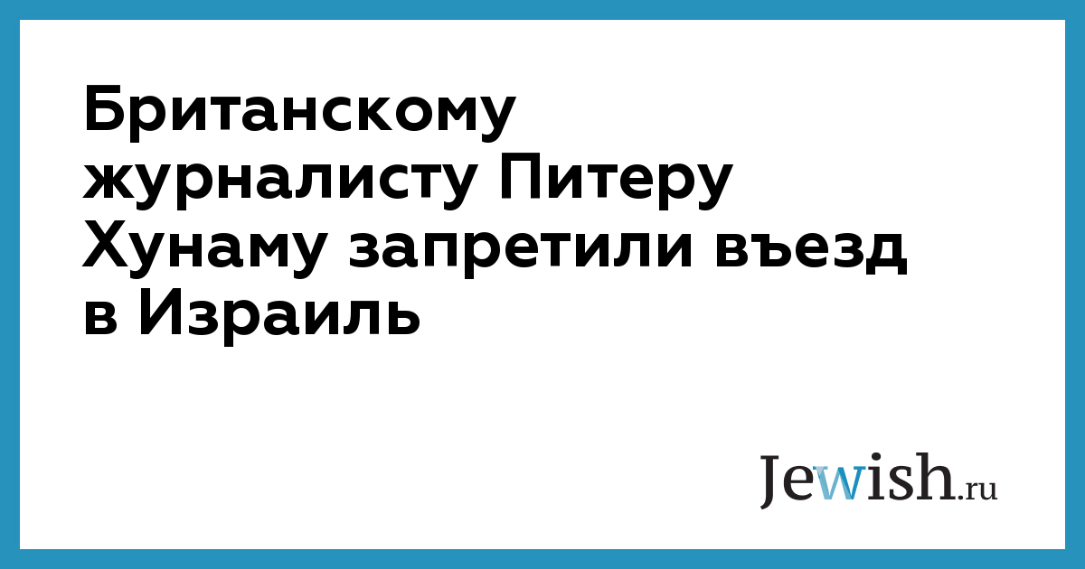 Британскому журналисту Питеру Хунаму запретили въезд в Израиль