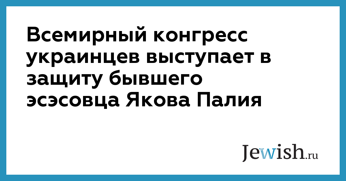 Всемирный конгресс украинцев выступает в защиту бывшего эсэсовца Якова Палия