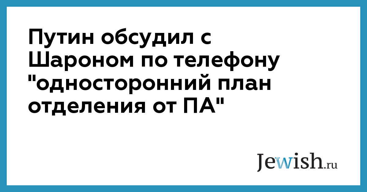 Путин обсудил с Шароном по телефону "односторонний план отделения от ПА"