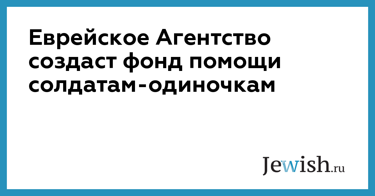Еврейское Агентство создаст фонд помощи солдатам-одиночкам