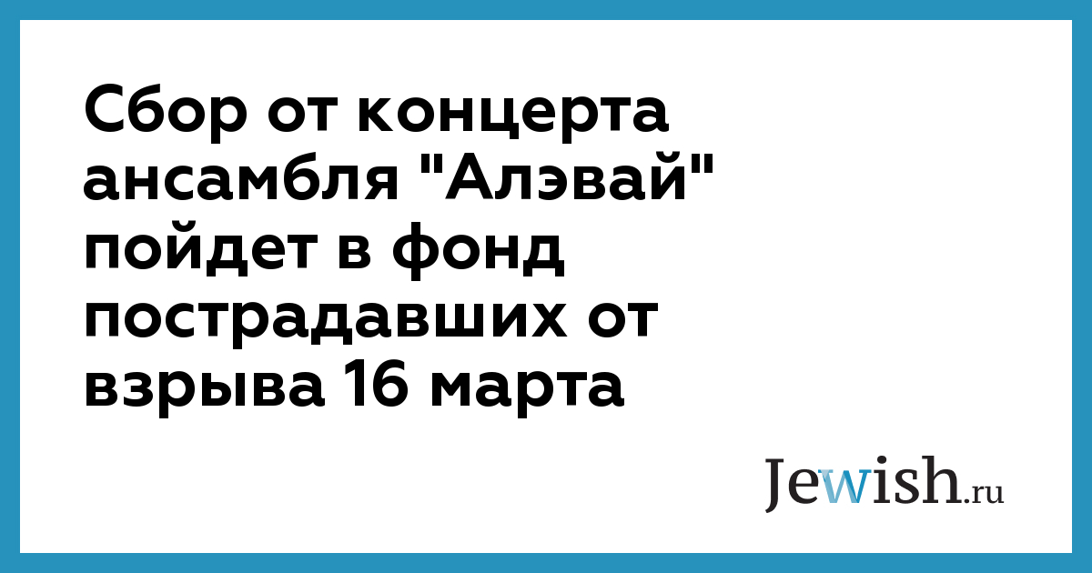 Сбор от концерта ансамбля "Алэвай" пойдет в фонд пострадавших от взрыва 16 марта