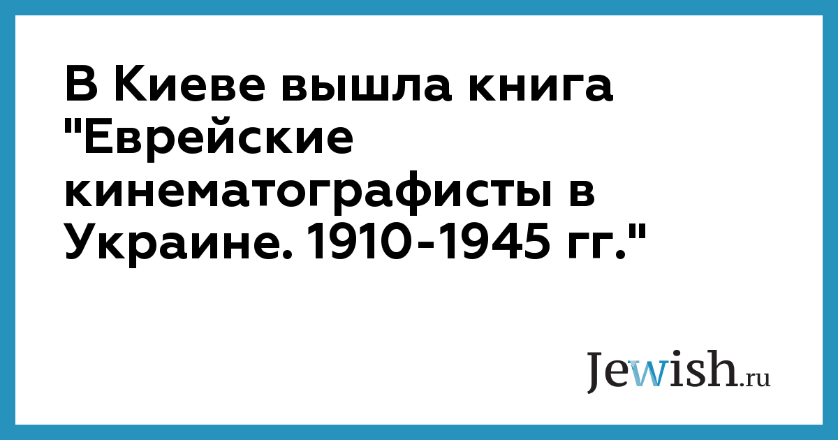 В Киеве вышла книга "Еврейские кинематографисты в Украине. 1910-1945 гг."