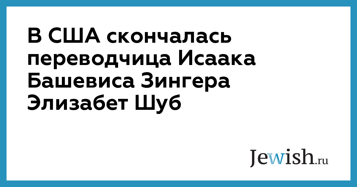 В США скончалась переводчица Исаака Башевиса Зингера Элизабет Шуб