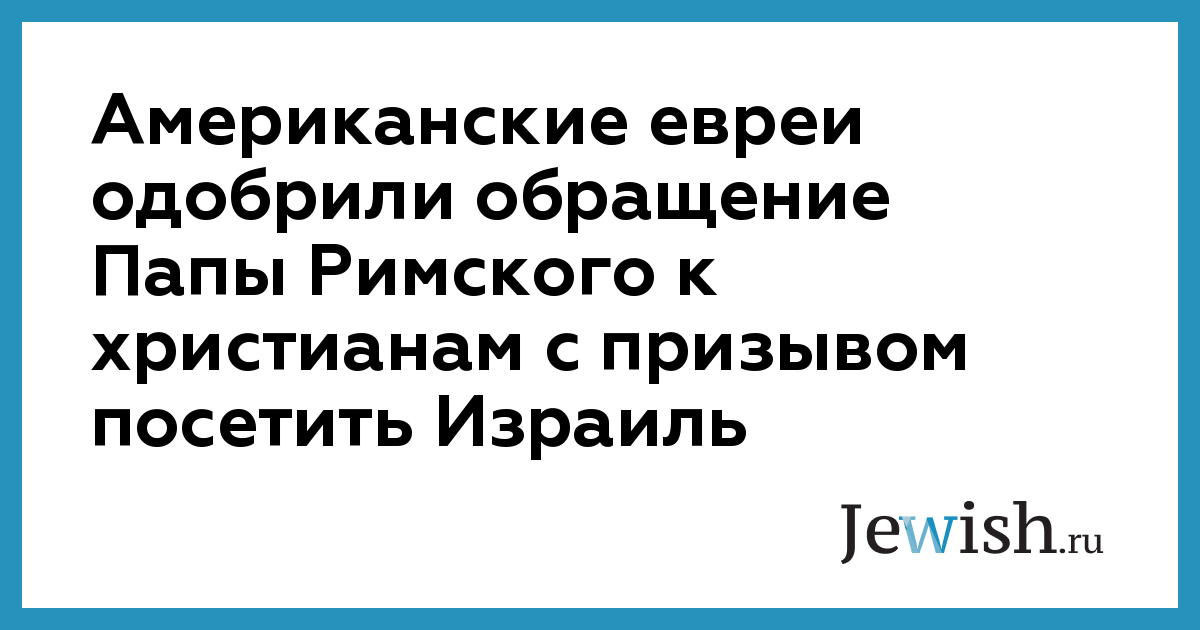 Американские евреи одобрили обращение Папы Римского к христианам с призывом посетить Израиль