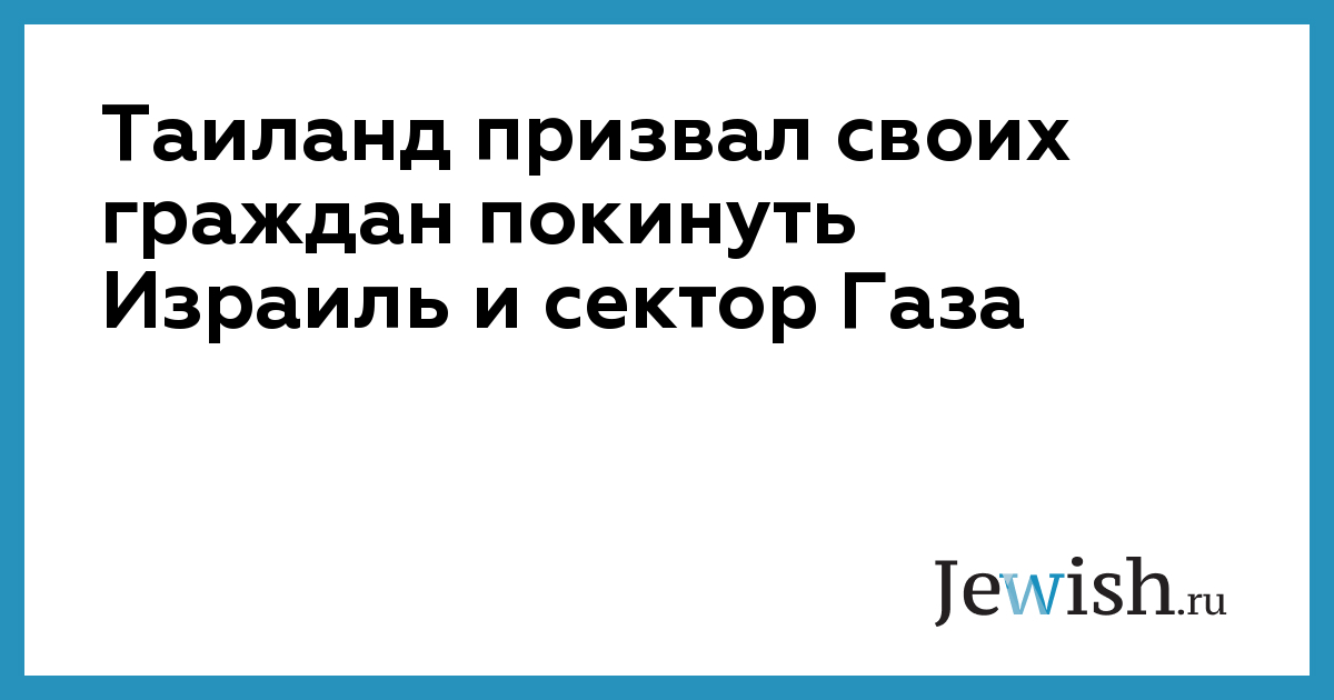 Таиланд призвал своих граждан покинуть Израиль и сектор Газа