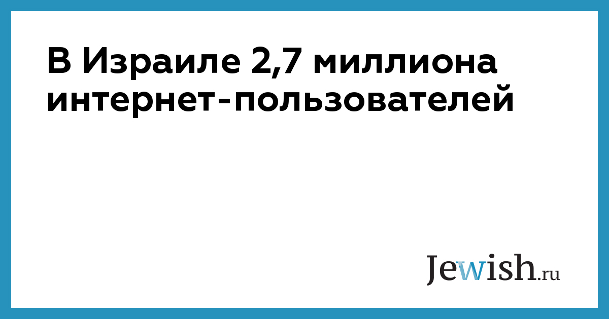 Около 950 000 семей еврейского сектора страны подключены к Интернету, 86% (свыше 800 000 семей) из которых пользуются услугами быстрого Интернета.