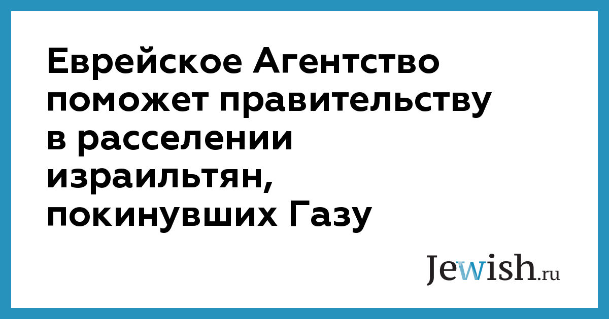 Еврейское Агентство поможет правительству в расселении израильтян, покинувших Газу