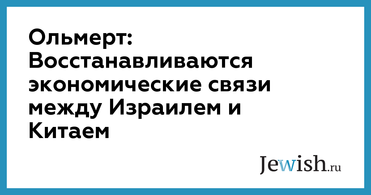 Ольмерт: Восстанавливаются экономические связи между Израилем и Китаем