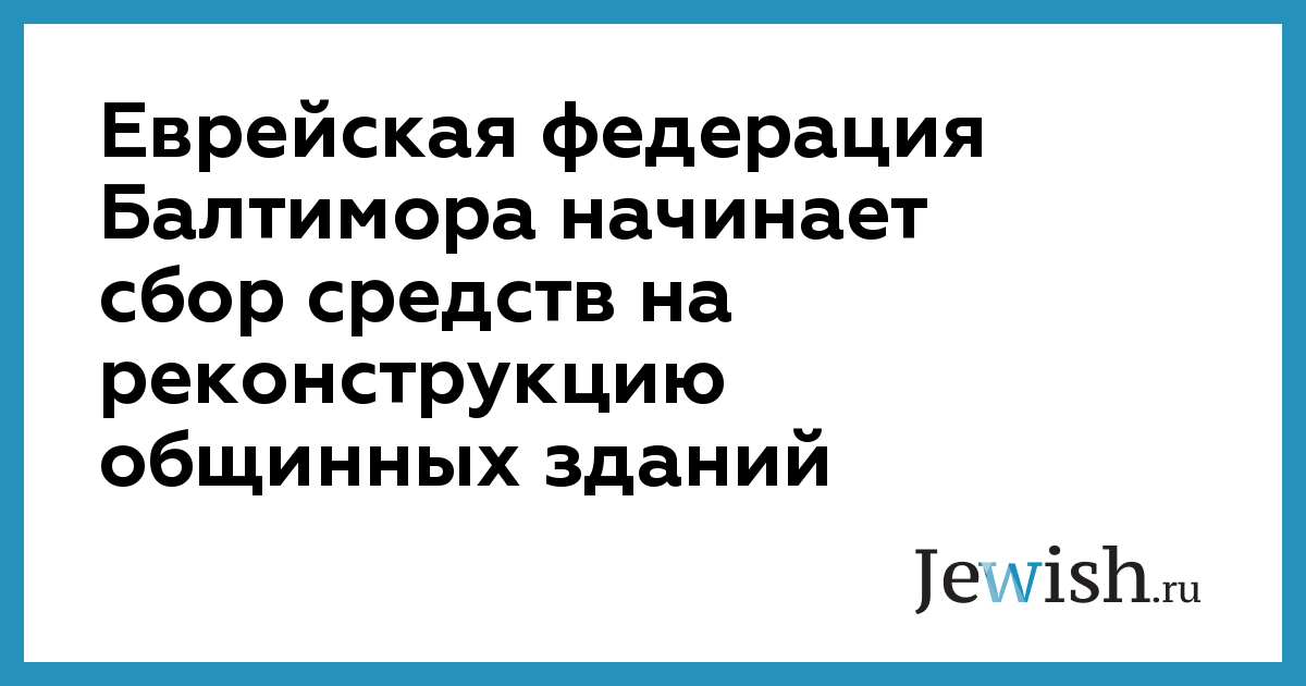 Еврейская федерация Балтимора начинает сбор средств на реконструкцию общинных зданий