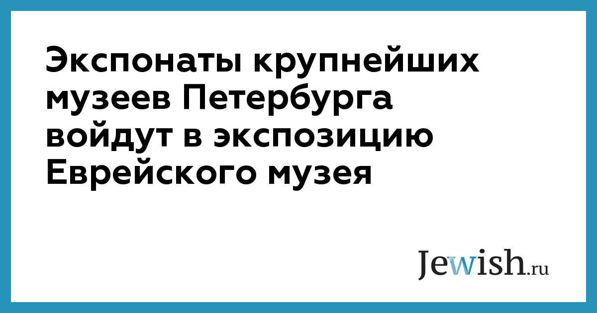 Экспонаты крупнейших музеев Петербурга войдут в экспозицию Еврейского музея