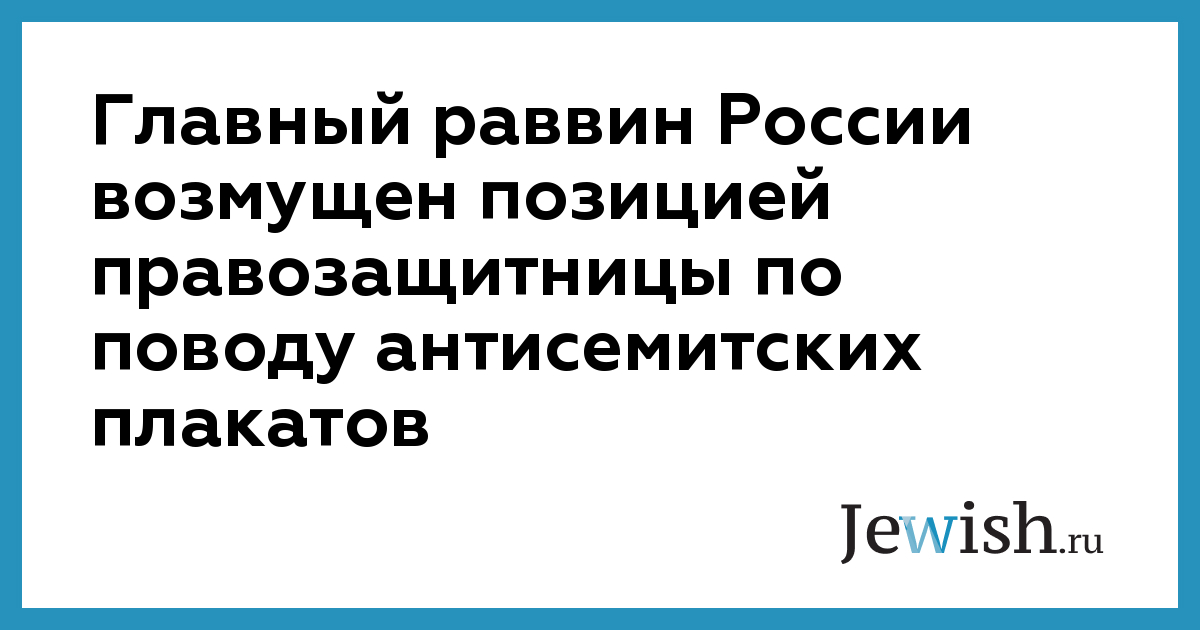 Главный раввин России возмущен позицией правозащитницы по поводу антисемитских плакатов