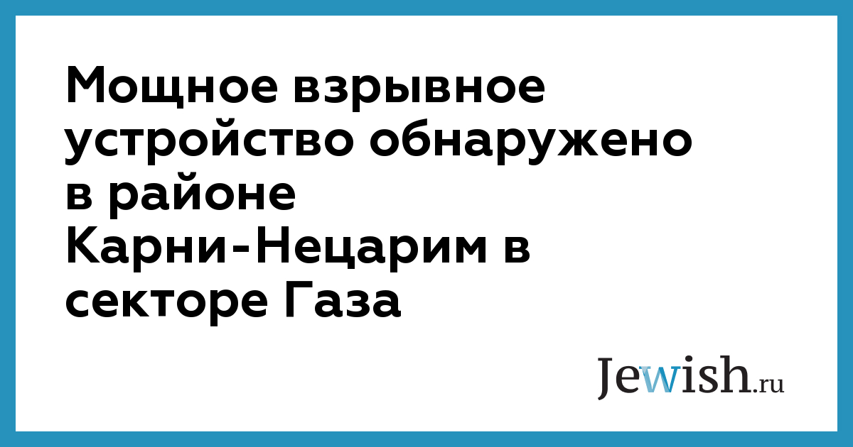 Мощное взрывное устройство обнаружено в районе Карни-Нецарим в секторе Газа
