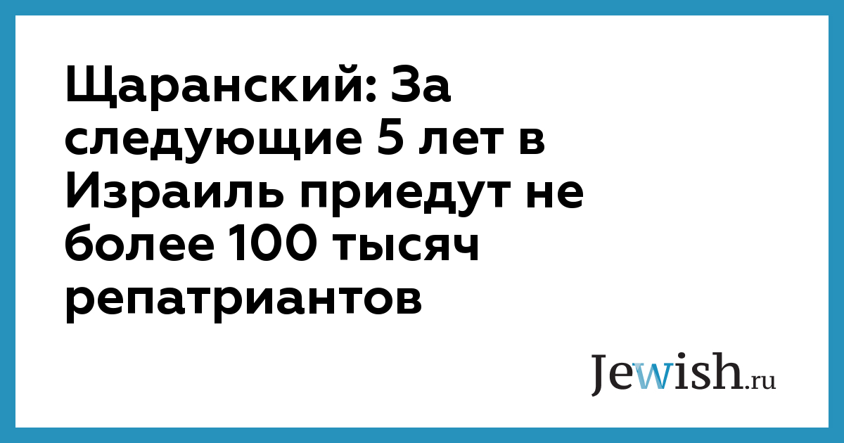 "Количество прибывающих в страну новых репатриантов из СНГ резко упало за последние годы. Если ничего не изменится к худшему, в пятилетний период в Израиль прибудут не более 100 тысяч репатриантов",-сказал Щаранский.