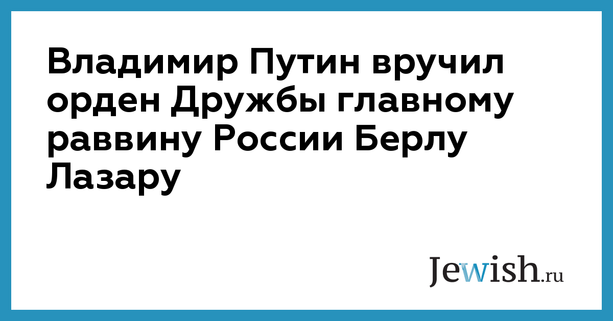 1 апреля президент России Владимир Путин подписал Указ о награждении главного раввина России орденом Дружбы за заслуги в развитии духовной культуры и укреплении дружбы между народами.