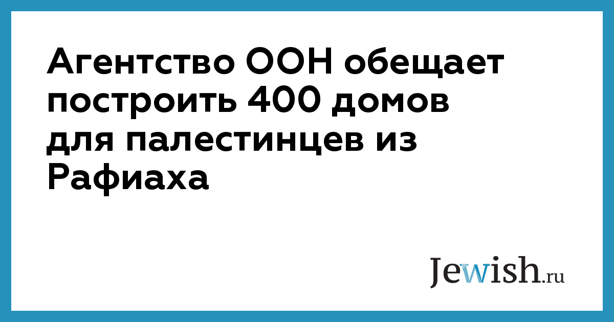 Агентство ООН обещает построить 400 домов для палестинцев из Рафиаха
