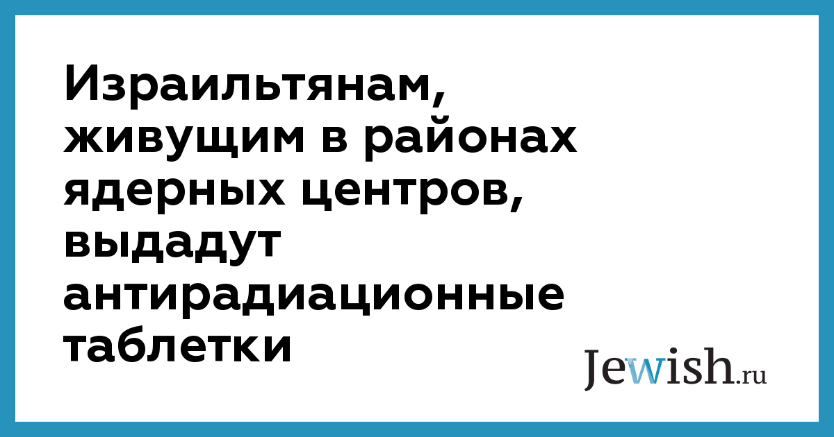 На еженедельном воскресном заседании кабинет министров Израиля утвердил план, разработанный совместно армейским командованием и Комитетом по атомной энергии страны. Согласно одобренной программе, всем жителям населенных пунктов, прилегающих к ядерным центрам Димона и Нахал-Сорек, будут розданы йодосодержащие таблетки, способные ослабить воздействие радиации на организм человека.
