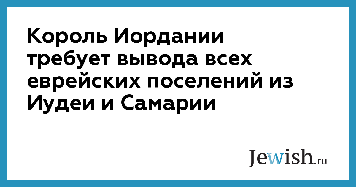 Король Иордании требует вывода всех еврейских поселений из Иудеи и Самарии