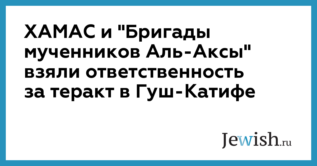 ХАМАС и "Бригады мученников Аль-Аксы" взяли ответственность за теракт в Гуш-Катифе