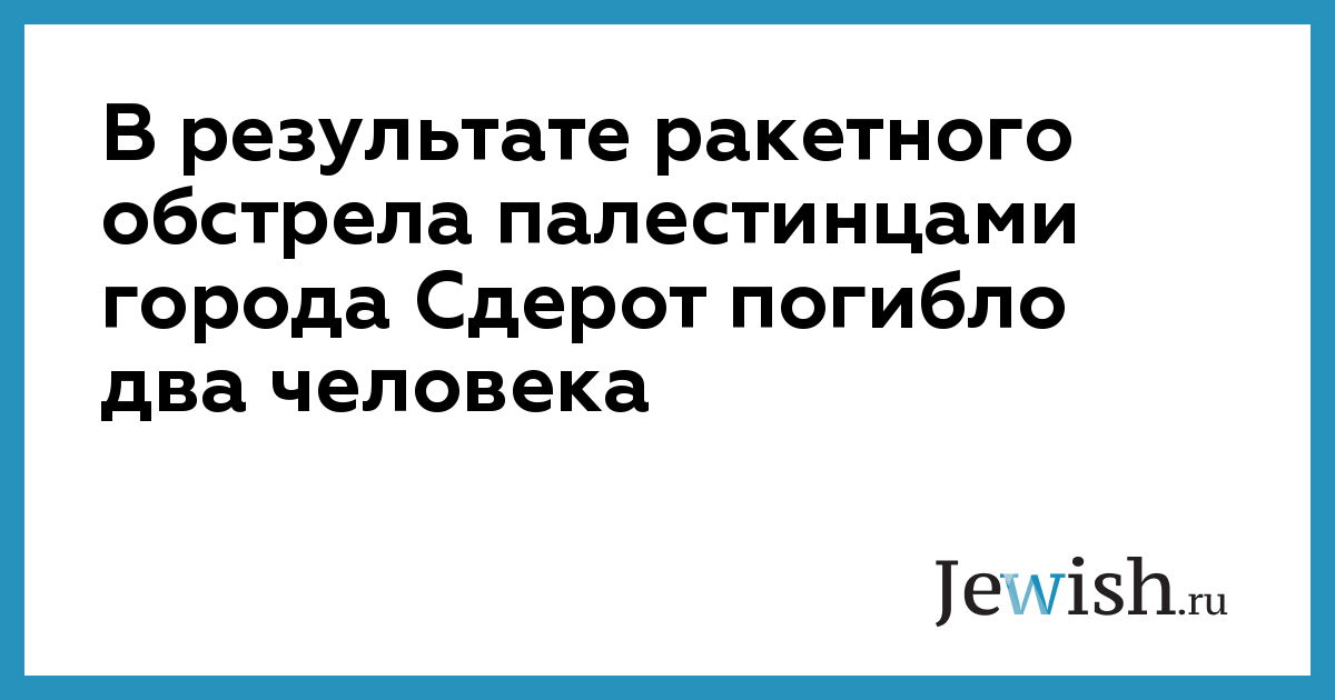 В результате ракетного обстрела палестинцами города Сдерот погибло два человека
