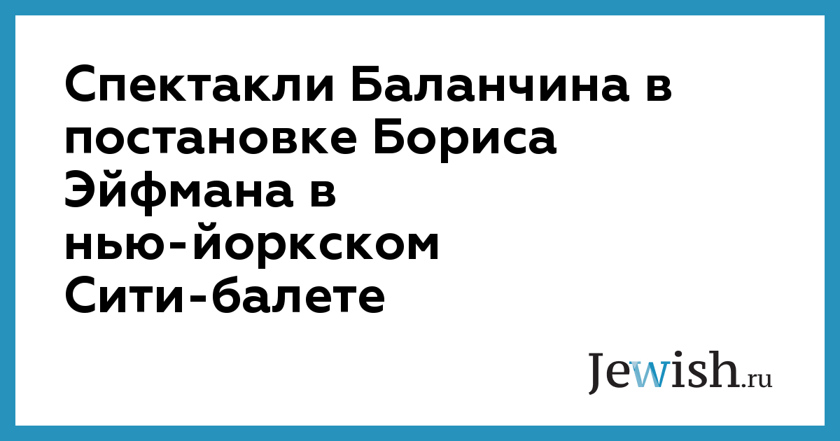 Спектакли Баланчина в постановке Бориса Эйфмана в нью-йоркском Сити-балете