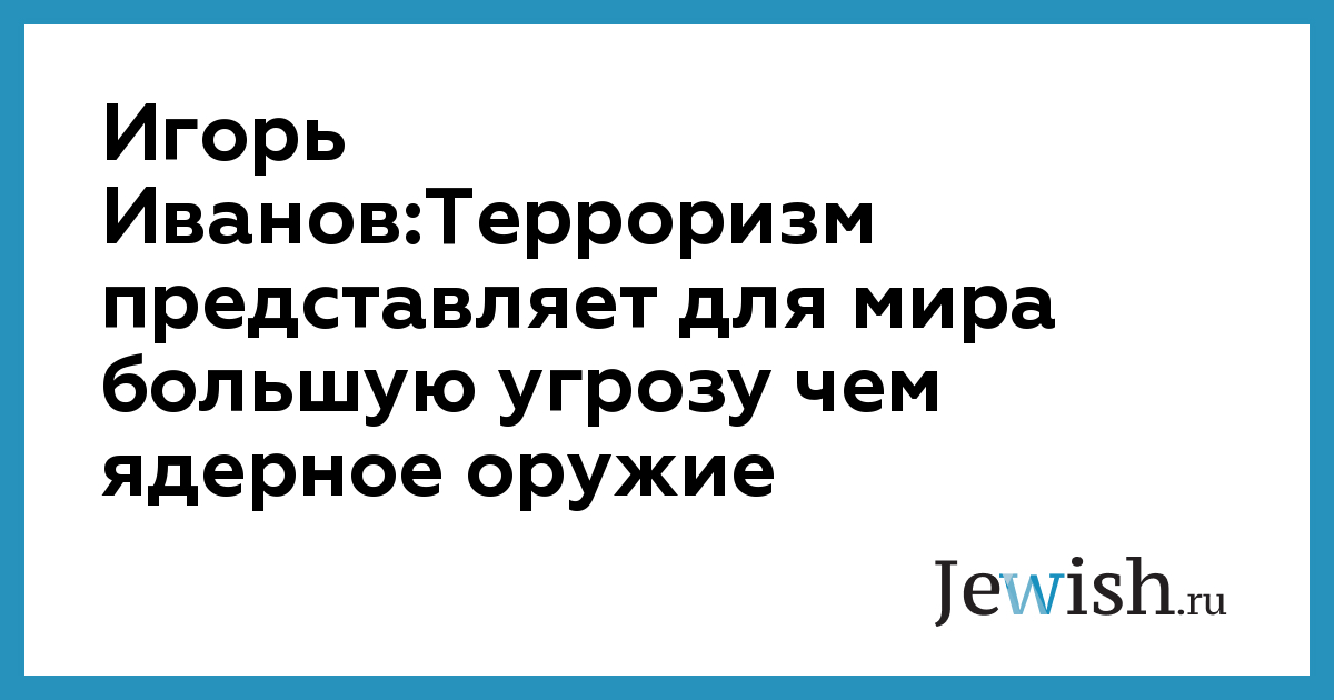 Игорь Иванов:Терроризм представляет для мира большую угрозу чем ядерное оружие