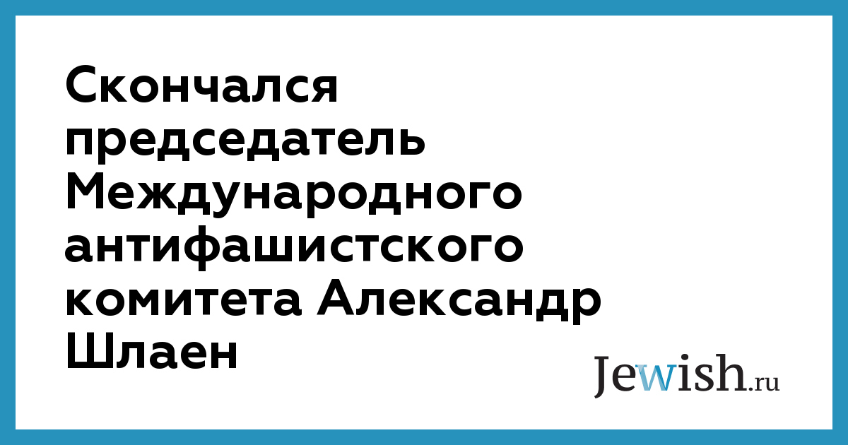 Скончался председатель Международного антифашистского комитета Александр Шлаен