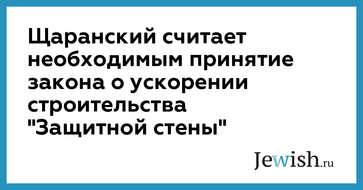 Щаранский считает, что, поскольку это решение было принято на основе существующего законодательства, следует немедленно провести в Кнессете закон, который даст возможность в минимальные сроки завершить строительство забора.