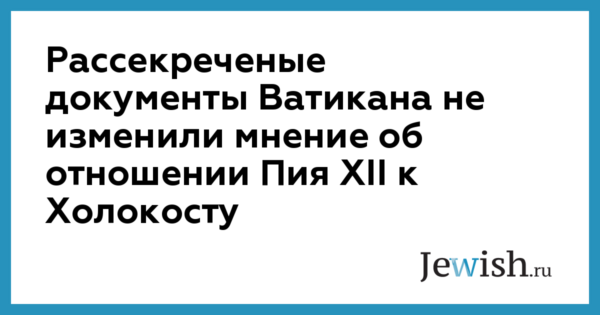 Рассекреченые документы Ватикана не изменили мнение об отношении Пия XII к Холокосту