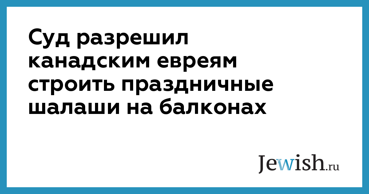 Суд разрешил канадским евреям строить праздничные шалаши на балконах