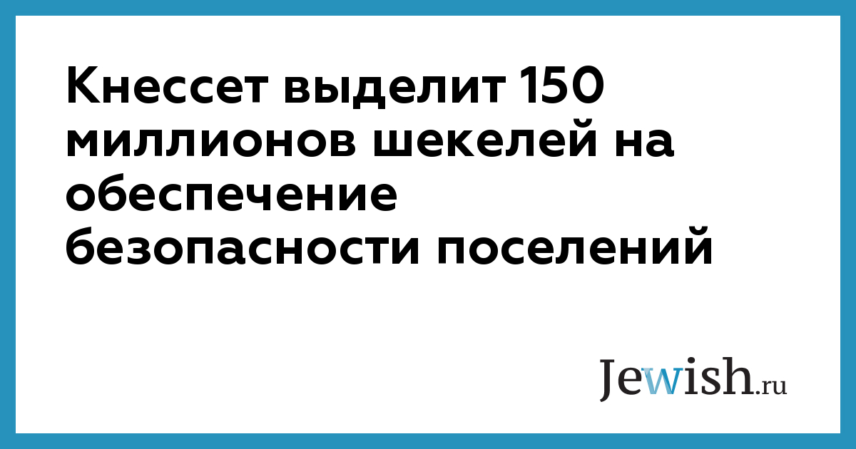 Кнессет выделит 150 миллионов шекелей на обеспечение безопасности поселений