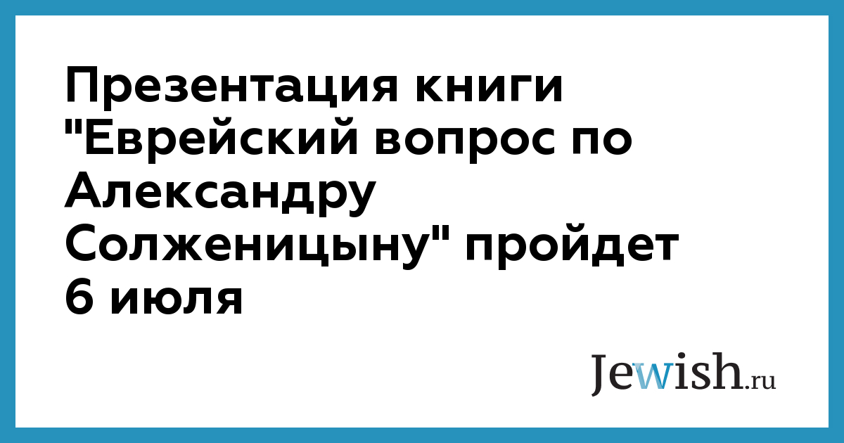 Презентация книги "Еврейский вопрос по Александру Солженицыну" пройдет 6 июля