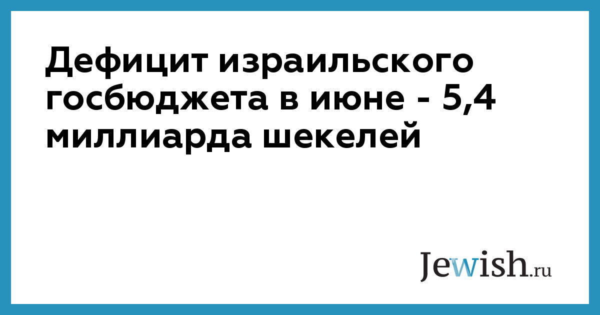 Дефицит израильского госбюджета в июне — 5,4 миллиарда шекелей