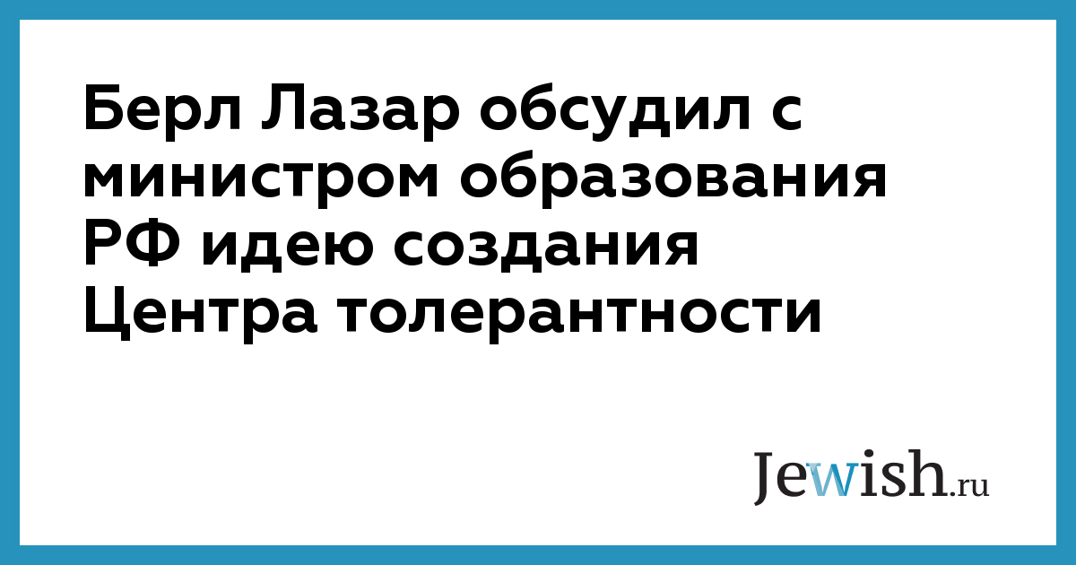 Берл Лазар обсудил с министром образования РФ идею создания Центра толерантности