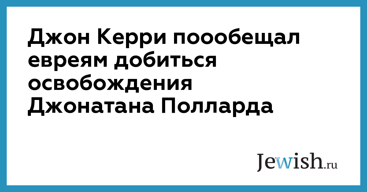 Керри также поообещал принять меры по пересмотру дела Джонатана Полларда, приговоренного к пожизненному заключению "за шпионаж в пользу Израиля".